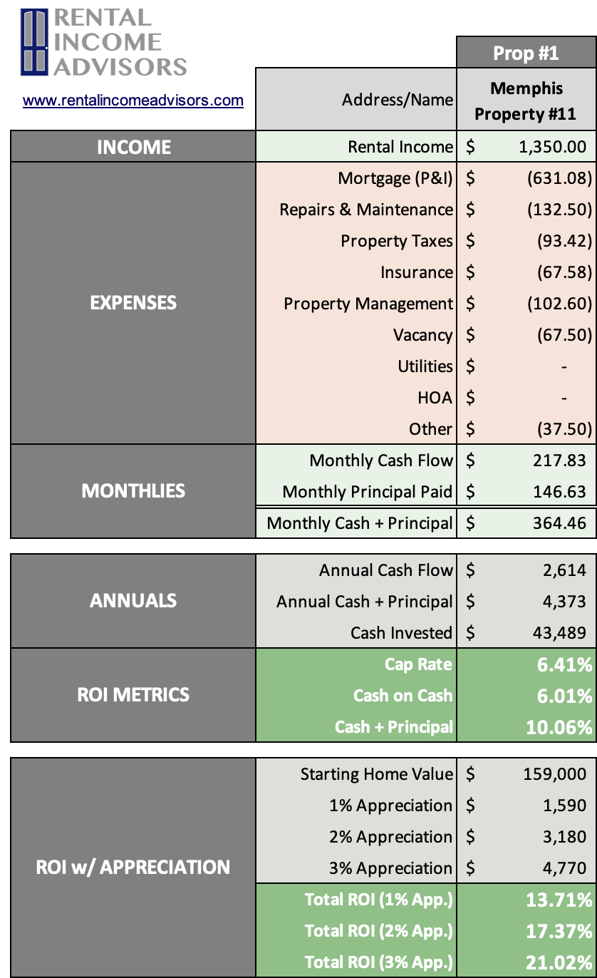 Finally, to sum up Property #11 and its financials, here’s the full “deal sheet”: